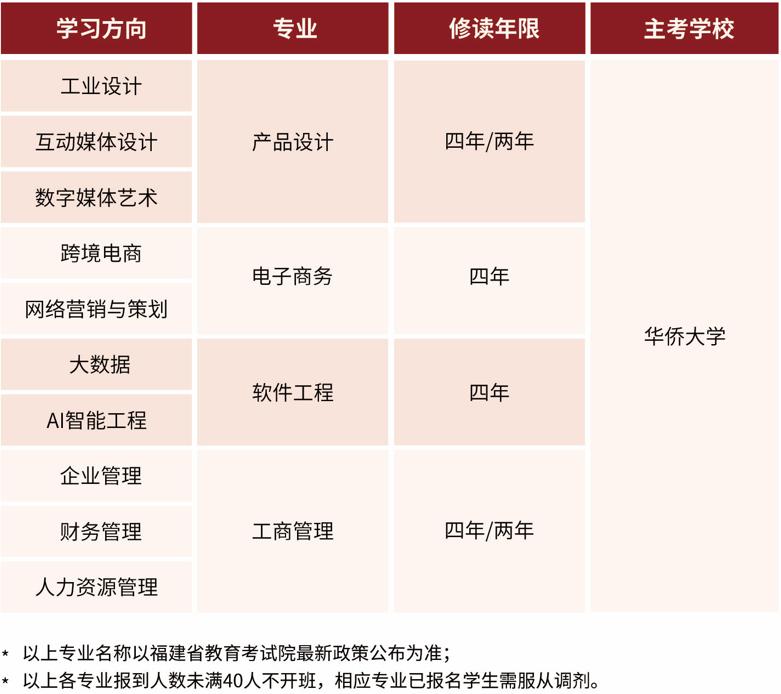 40年来,学院围绕“为侨服务、面向市场、保证质量、稳步发展”的办学宗旨,根据学校发展的总体规划,依托学校雄厚的师资力量、先进的仪器设备和丰富的书刊资料及良好的办学环境,坚持以质量求生存,以创新求发展,学院依据社会经济发展的客观需要,逐年调整专业和课程设置,先后开设70多个学历专业,共为海内外社会培养毕(结)业学生5.5万余人,遍及12个国家和地区,其中境外生近4000人。
